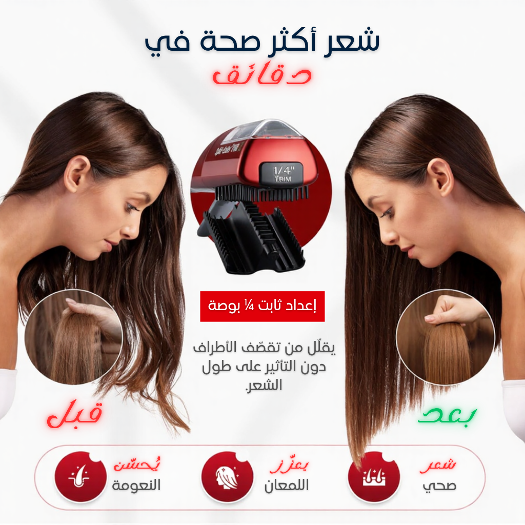 قص دقيق: يزيل الأطراف التالفة بدون ما ينقص من طول الشعر